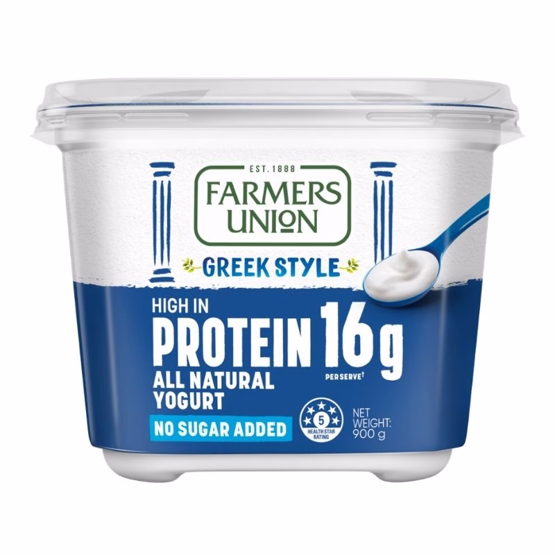 The Farmers Union Greek Style High Protein Yogurt delivers 16g of protein per serve, with no added sugar and all-natural ingredients.