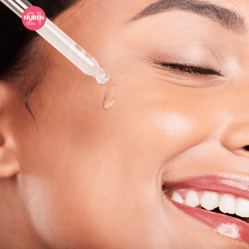 Apply a thin, even layer: Using clean fingers or a dropper, spread the solution evenly across your face. Steer clear of the eyes, lips, nostrils, and any areas with cuts or active breakouts.